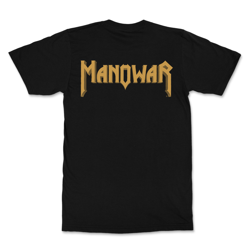 MANOWAR T-shirt features a striking front design with the band's iconic sword graphic, a symbol that has represented the power and might of Manowar since 1982. The sword, with its intricate detailing and gold accents, is a key element in the band’s vintage aesthetic, connecting back to their early days of legendary heavy metal. The back of the T-shirt is plain, featuring just the band's logo, making this piece both bold and classic. Perfect for true fans who want to honor the band’s legacy with a timeless, vintage-inspired design.