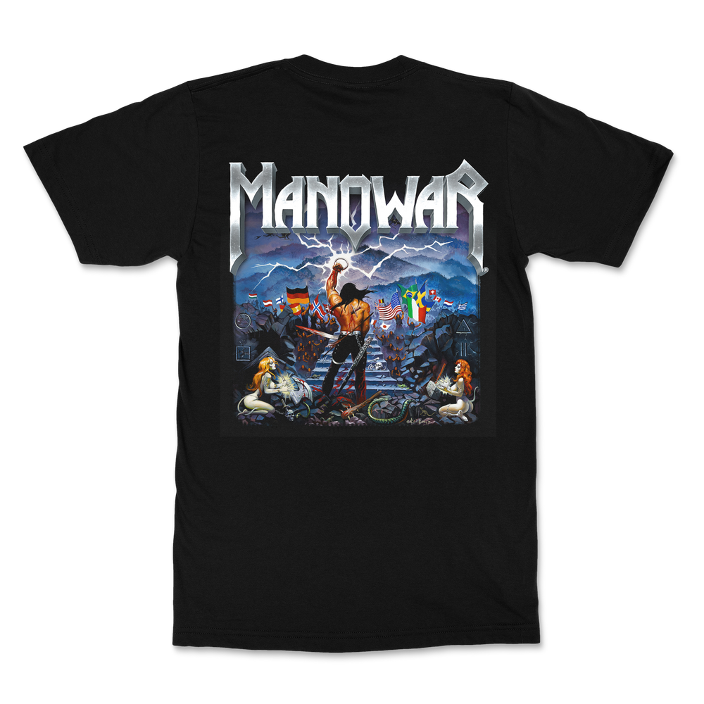 Newly created for the back cover of MANOWAR's re-imagined "KINGS OF METAL MMXIV" release in 2014, the back of this limited edition T-shirt features legendary fantasy artist Ken Kelly's imaginative twist of his iconic 1988 cover art.