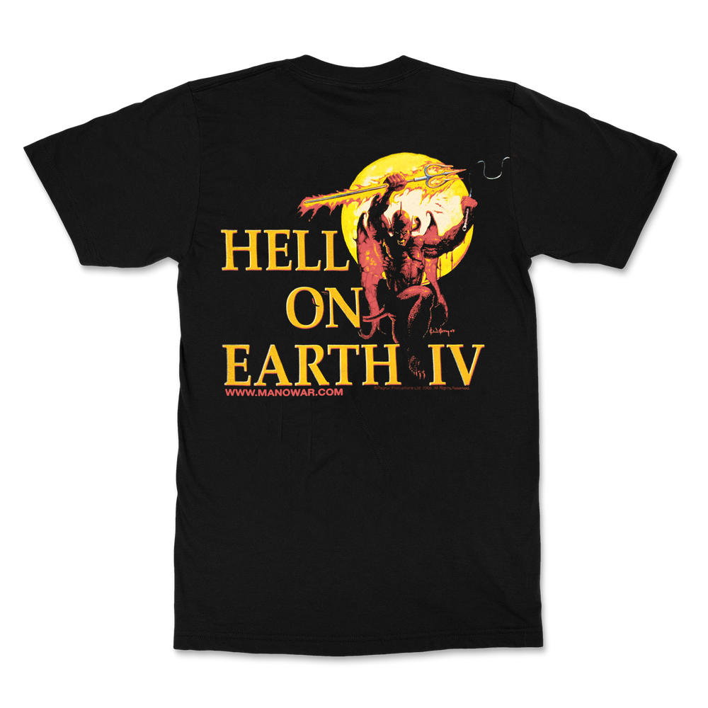 "Hell On Earth Part 4" T-Shirt—an homage to the band's epic live performances captured in this iconic video series. This shirt encapsulates the raw energy and power of Manowar's concerts, making it a must-have for dedicated fans. Crafted with premium materials, it ensures both comfort and durability, allowing you to carry a piece of the legendary "Hell On Earth Part 4" experience wherever you go. Let the spirit of the stage live on with this bold and timeless MANOWAR T-Shirt.